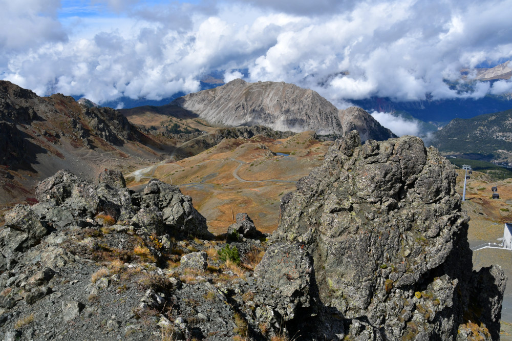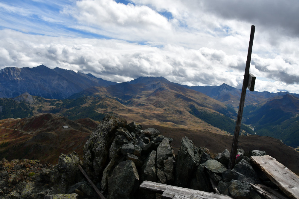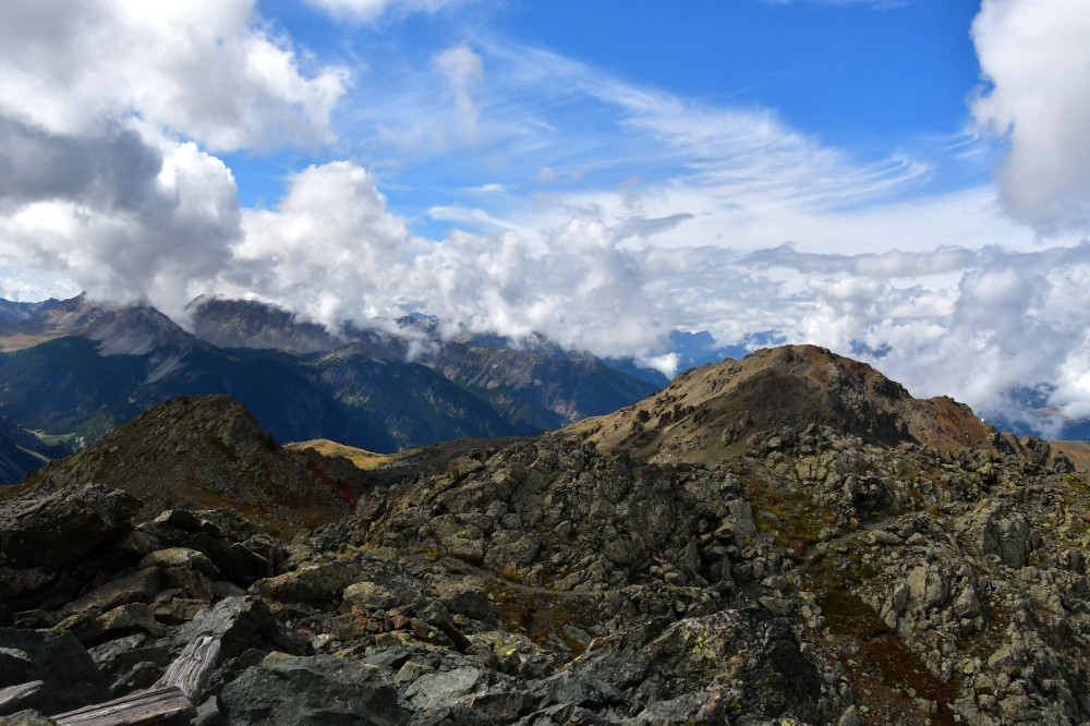 Le sommet du Grand Charvia est un belvédère remarquable sur le Chenaillet, la vallée des Fonts de Cervières, Sestrière et le mont Chaberton.