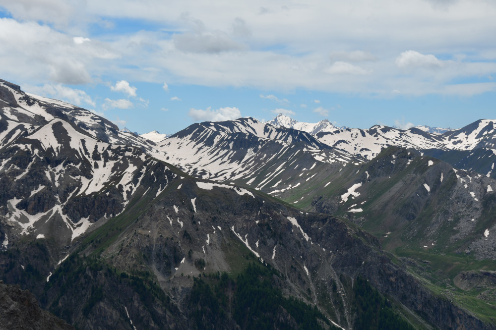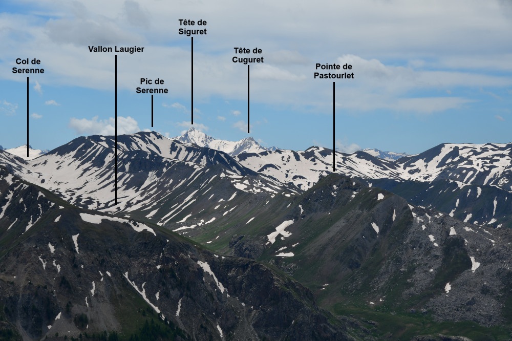 Le vallon Laugier est observé depuis le sommet du Pic d'Escreins, donc vu du nord à une distance de 5,5km.