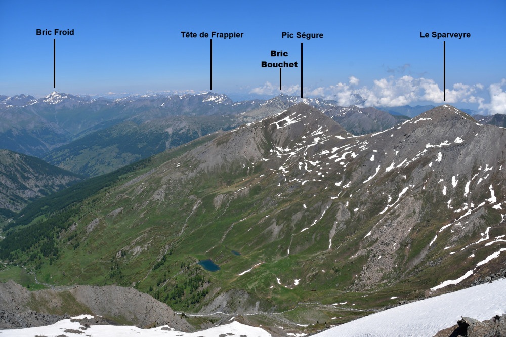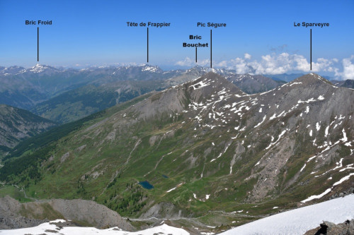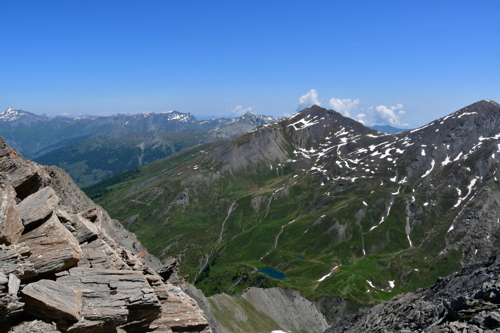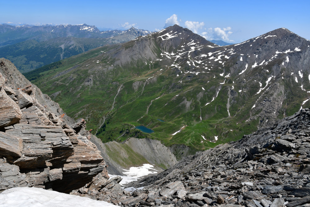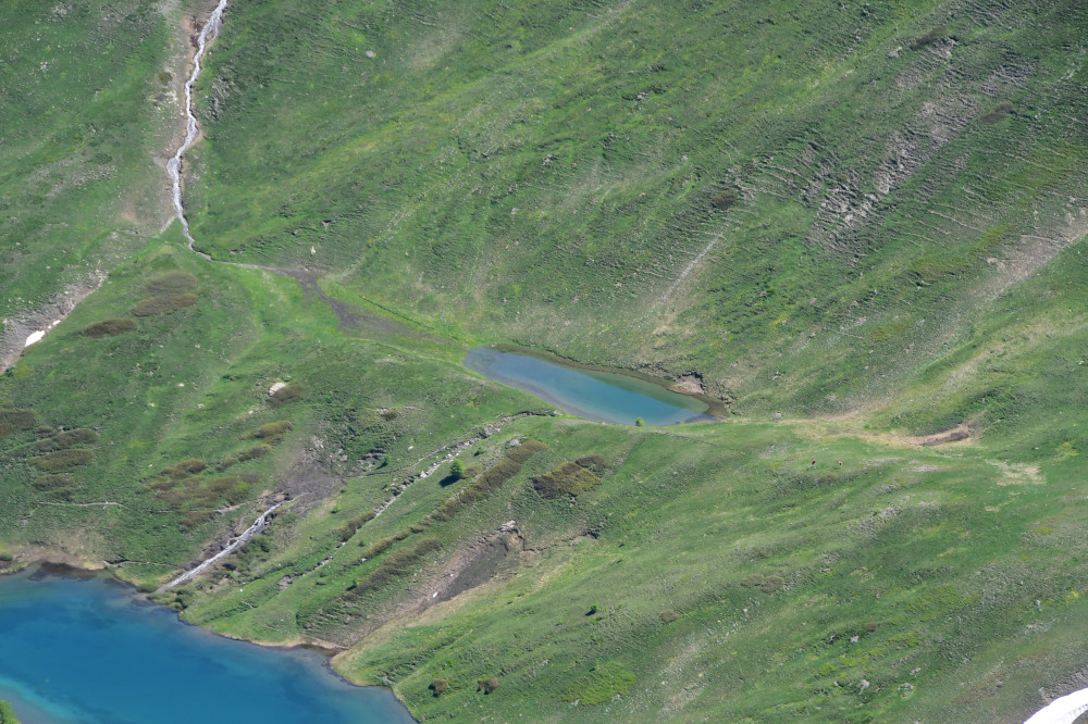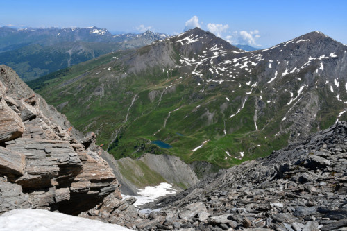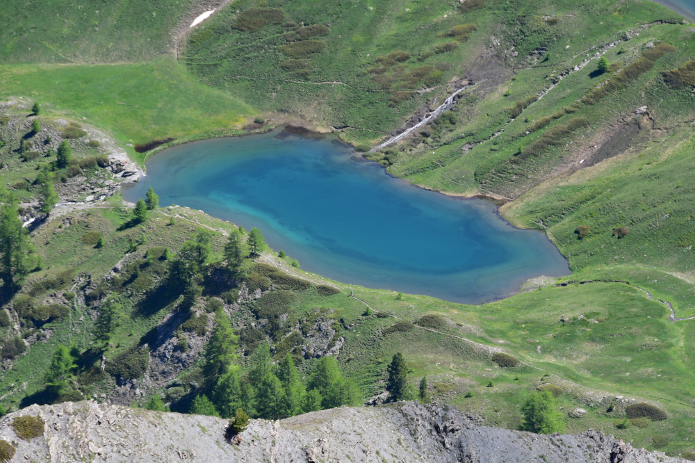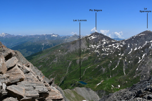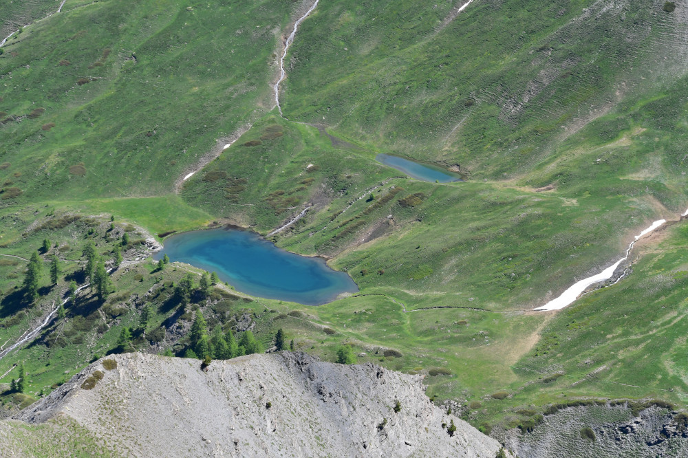 Les lacs Lacroix sont observés depuis le sommet du Grand Queyras, donc vu du sud à une distance de 1,5km.