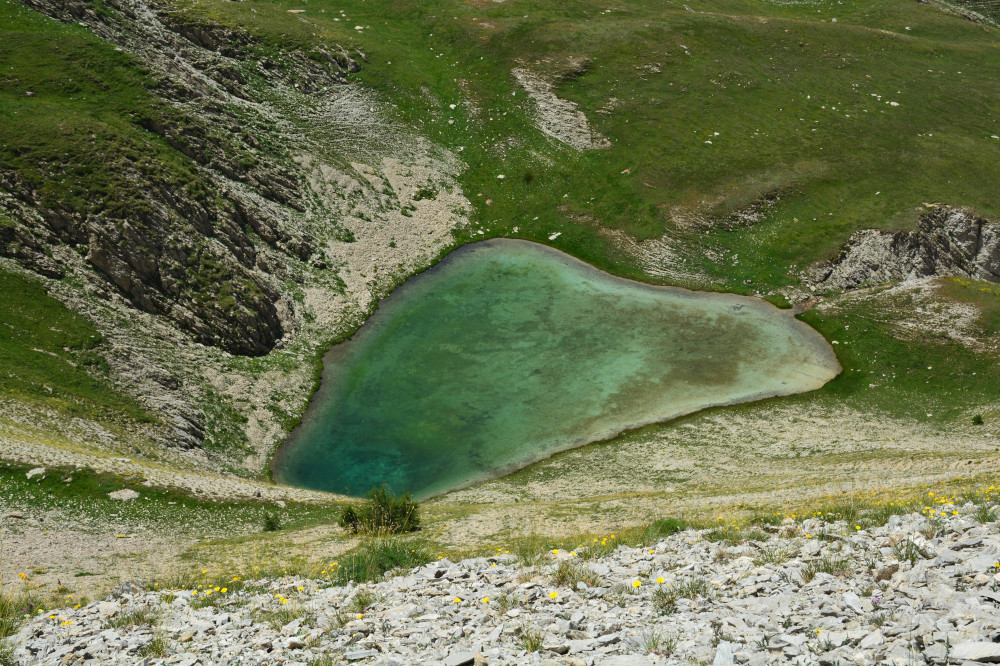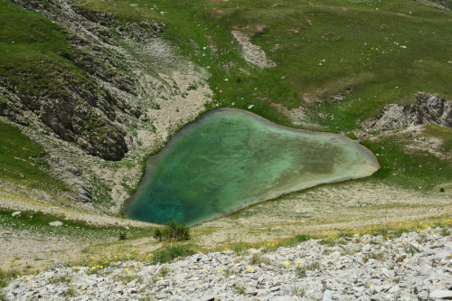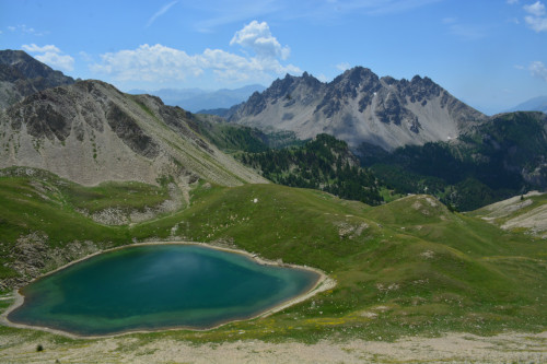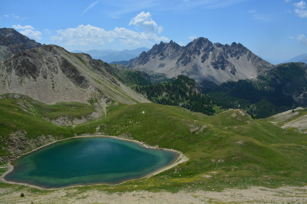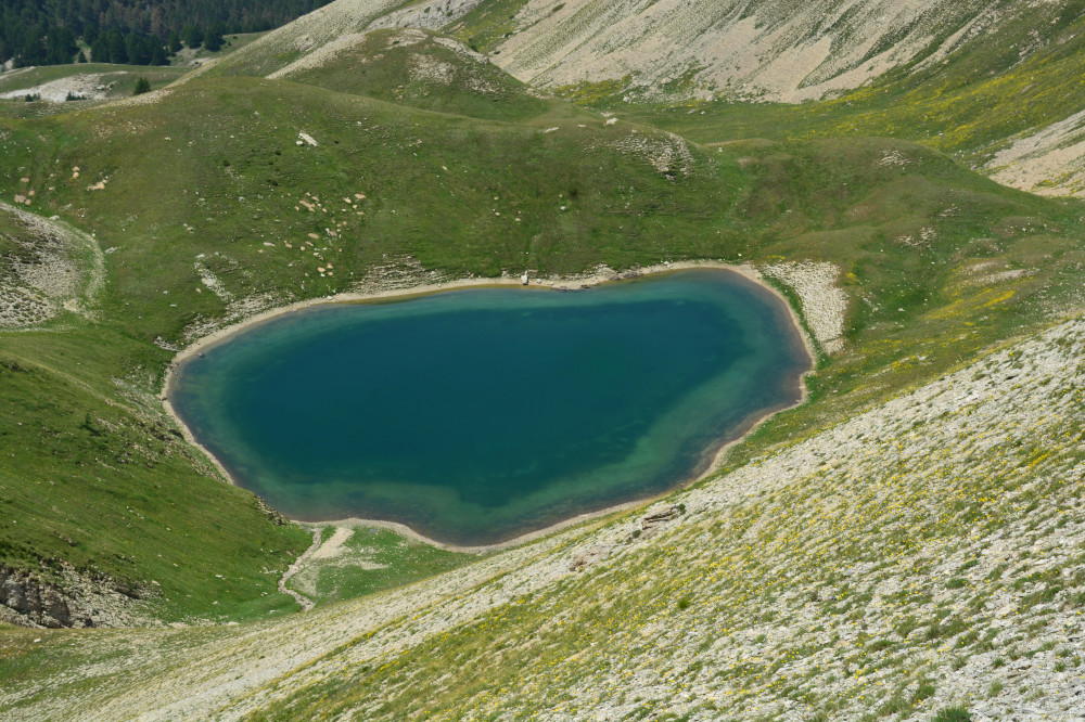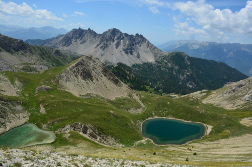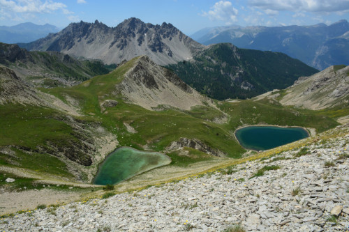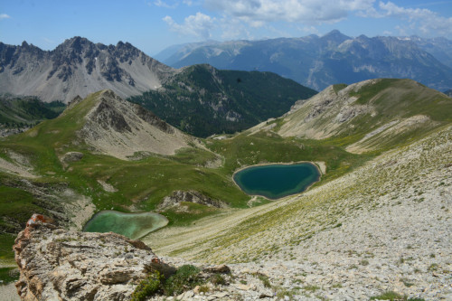 Les lacs du Lauzet sont observés depuis la crête de Patégou, donc vus du nord à une distance de 250m.