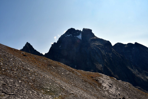 Le mont Viso est le point culminant des Alpes cottiennes. Ce sommet est observé depuis le col Losetta situé à 2,6 km à l'ouest.