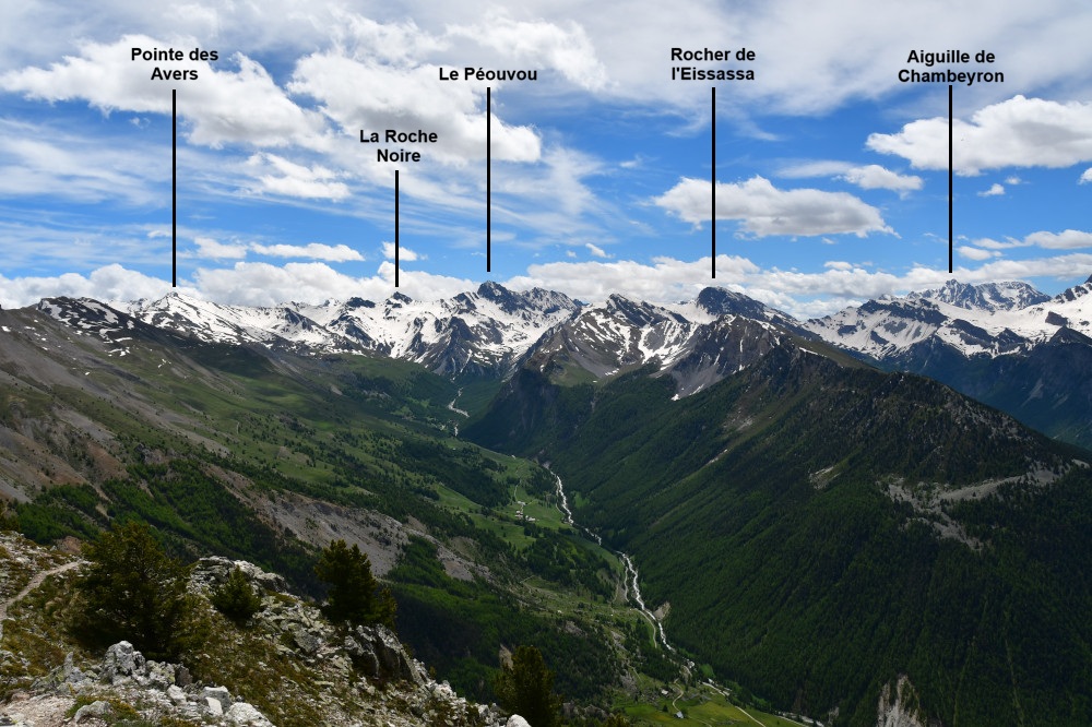 Le point culminant de la Pointe de Rasis est un magnifique belvédère sur les sommets alentours : la Pointe de Rasis, la pointe des Avers, le Péouvou, le Rocher de l'Eissassa, la Tête de Girardin, les Pics de la Font Sancte et la pointe de la Saume.