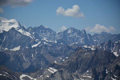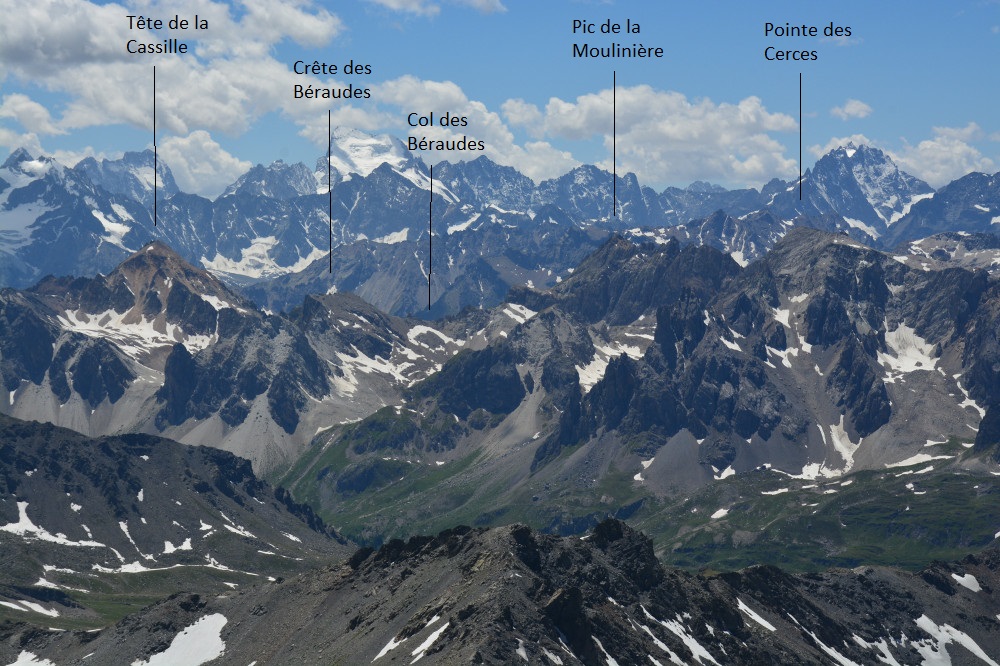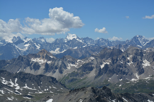 Photographies prises du sommet du Mont Thabor, donc depuis le nord-est. Distance : 24km (La Meije) à 30km (L'Ailefroide).