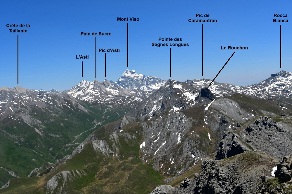 Le Pic de Château Renard est un magnifique belvédère sur les sommets du Queyras. Du sommet, vous aurez une vue à 360° allant du Mont Viso, du Péouvou, des pics de la Font Sancte, du sommet d'Assan, du Pic de Rochebrune et du Grand Queyras.