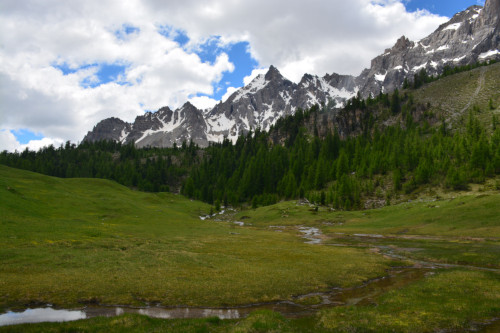 Le pic des Heuvières et la crête des Veyres sont observés depuis le sentier menant au Pas du Curé, au niveau du ruisseau de la Pisse, donc vus depuis le nord. Distance : 2,8 km.