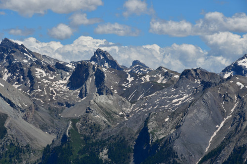 Lees pics de la Font Sancte sont observés depuis le sommet de la Mayt, donc vus depuis le nord-ouest. Distance : 16 km.