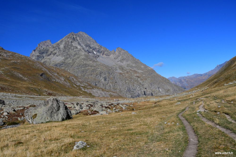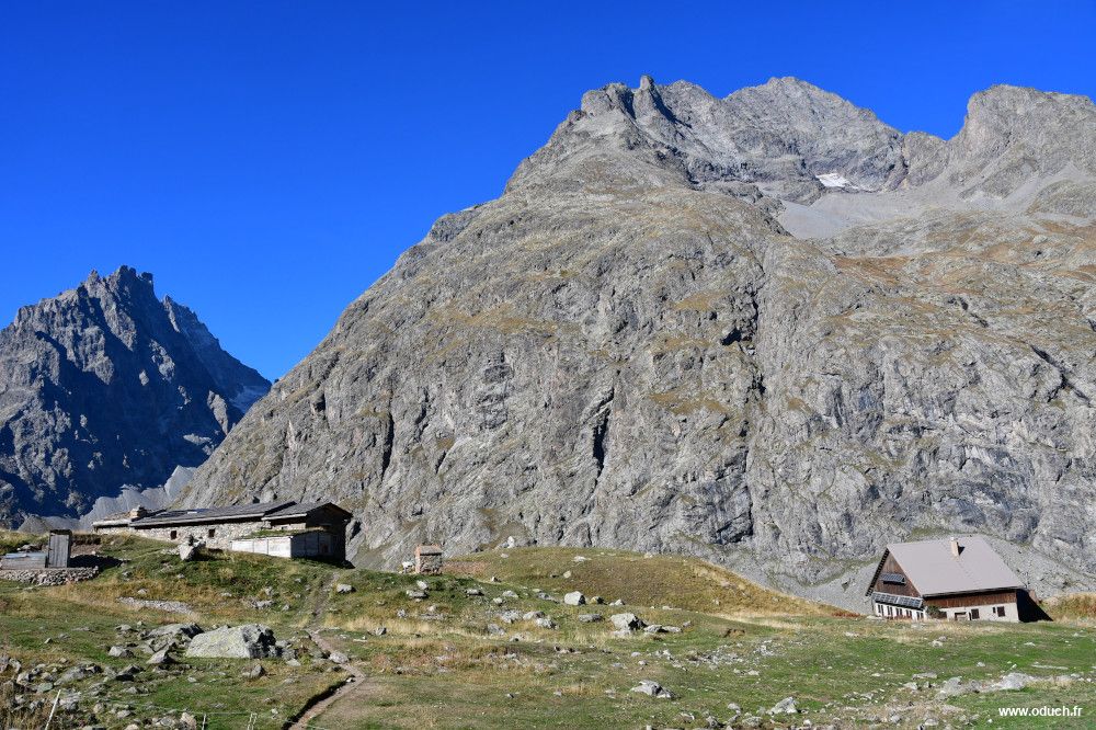Le pic Nérot est observé depuis le refuge de l'Alpe de Villar-d'Arêne, donc vu de l'est à une distance de 2,7 km.