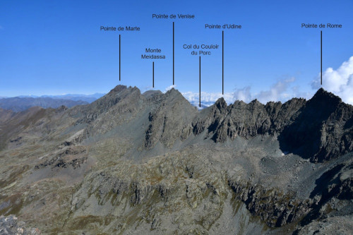 La pointe de Marte, de Venise, d'Udine et de Rome sont observées depuis la pointe Jouanne ou Mont Losetta, donc depuis le sud à une distance 3 km pour la pointe de Marte.