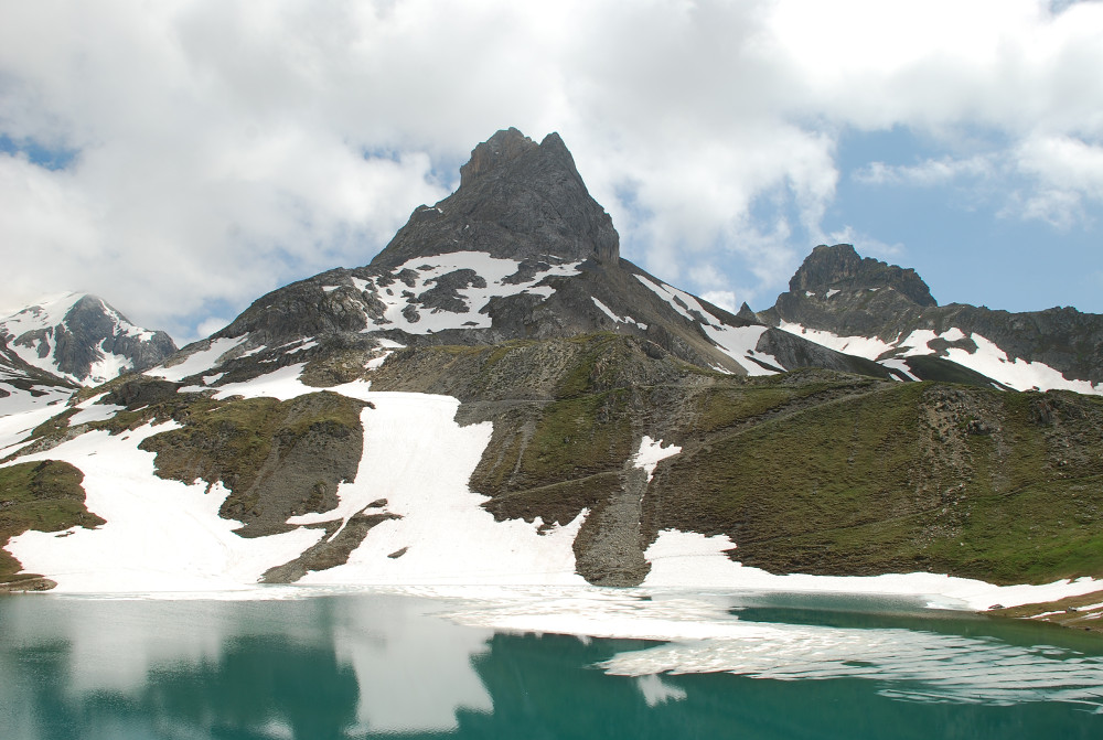 Sommet surplombant le lac du Grand Ban (2496m) et le col des Cerces (2459m), le lac Rond (2459m) et le lac de la Clarée (2574m).