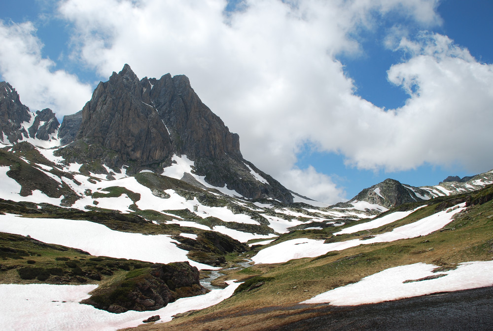 Prise de vues depuis le sentier menant au seuil des Rochilles, un peu en aval du seuil, entre le Rau des Rochilles et le lac de la Clarée (vue du Nord).