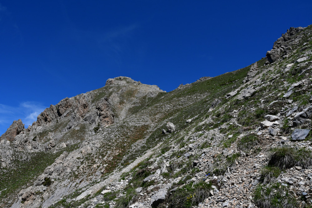 Le sommet d'Assan est vu du sud-est, depuis les pentes sous le sommet.