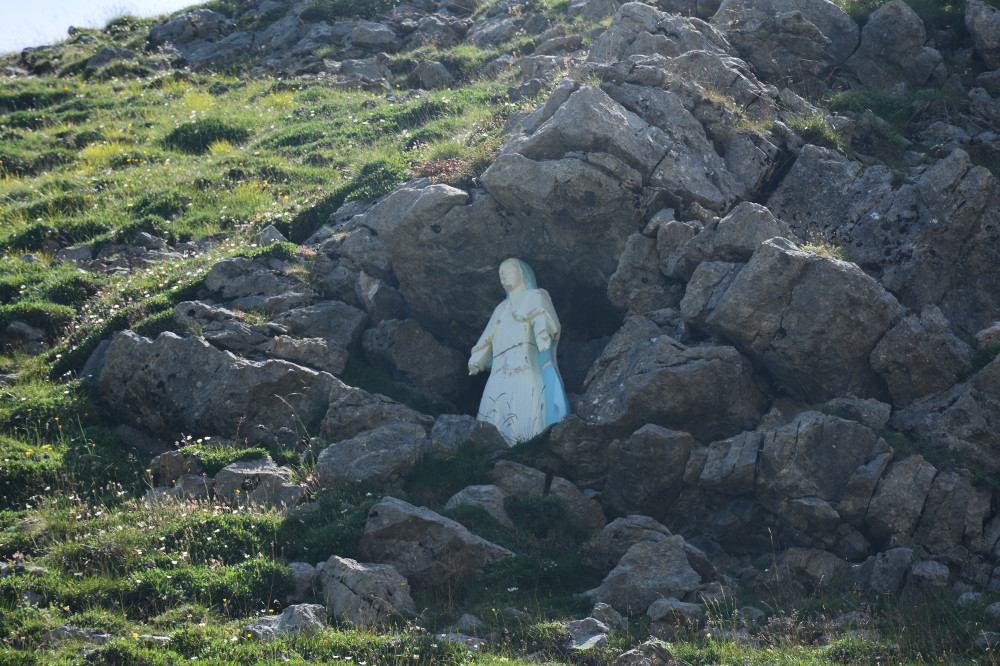 La statue de Marie se situe sous le sommet du Palastre. On l'observe depuis le sentier de randonnée menant au sommet.
