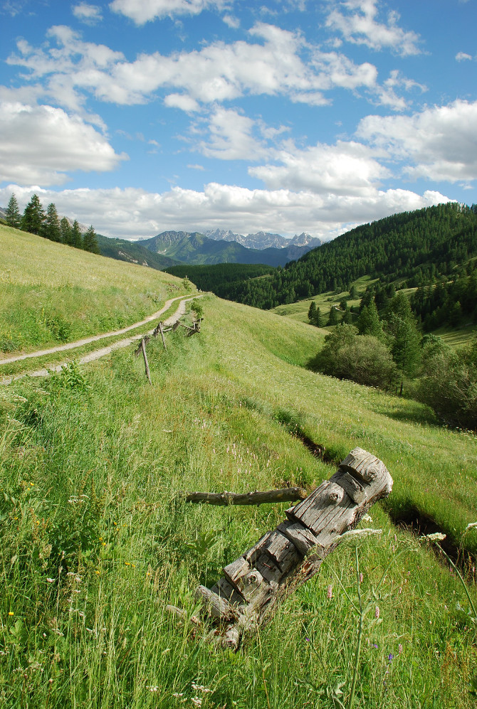 Vallon partant du hameau de Souliers et grimpant au col Tronchet et crêtes de Glaisette. Au fond du vallon, le pic de Rochebrune (3320m).