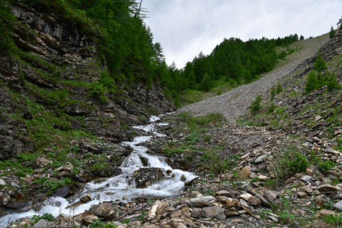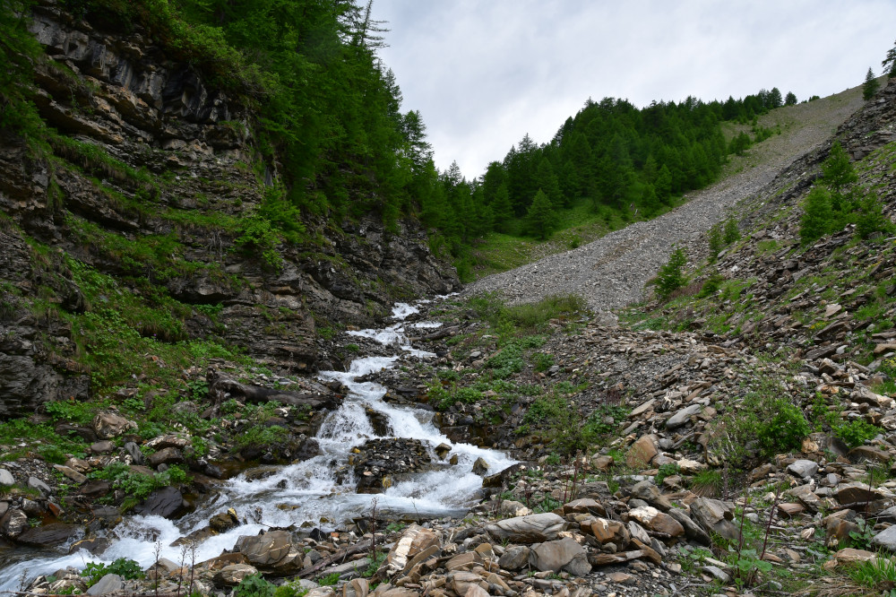 Remonter les quelques derniers mètres de la piste forestière qui se transforme ensuite en sentier. Traverser le torrent du ravin de Chambe Lève. Après environ une centaine de mètres, quitter ce sentier pour suivre celui partant vers la gauche dans la prairie.
