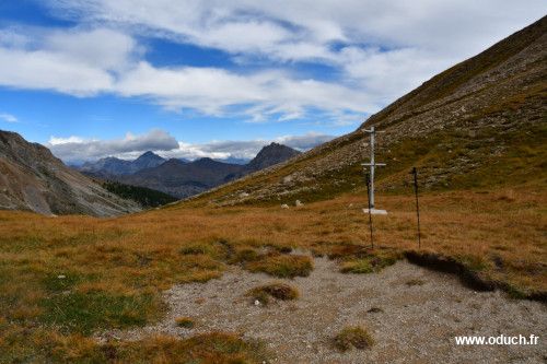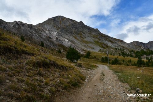 Du parking, traverser la route et suivre la piste en direction de Clot la Cime (pas de panneau, juste visuel). Après 850m, à la fin de la piste suivre le sentier vers la droite. 350 mètres plus loin, le sentier disparait. Continuer en réalisant une grande courbe vers la gauche en restant à flanc de montagne, sans perdre d'altitude. Continuer vers le col des Ourdéis à travers la prairie alpine. Rejoindre le col.