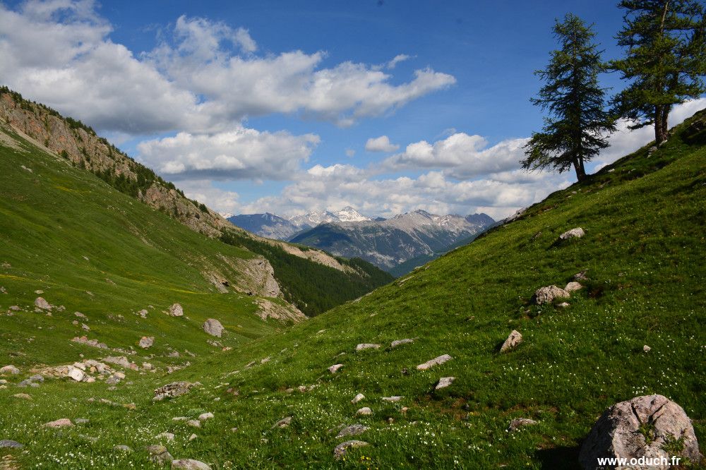 • Le col de Trancoulette, à gauche, la Croix d'Aquila