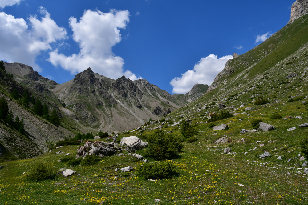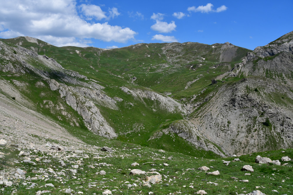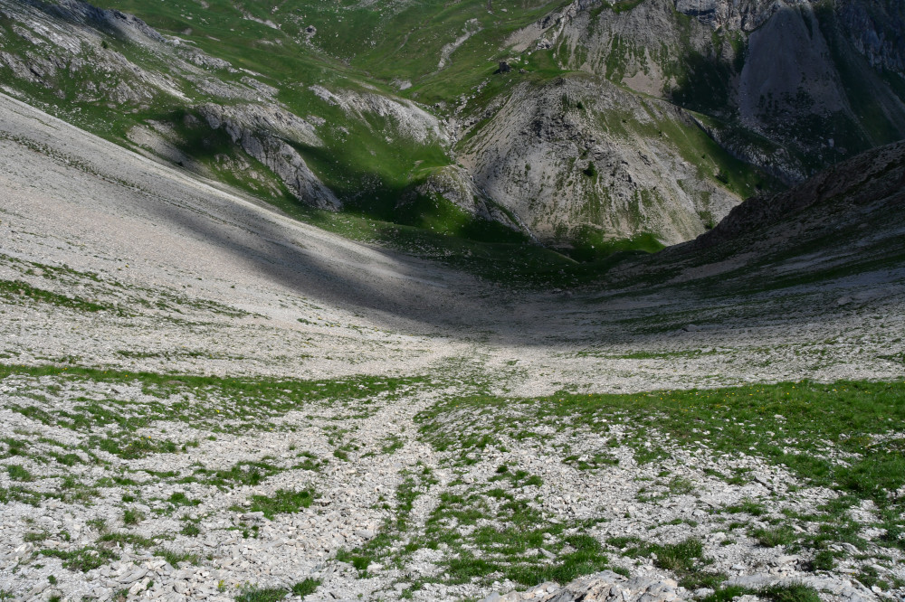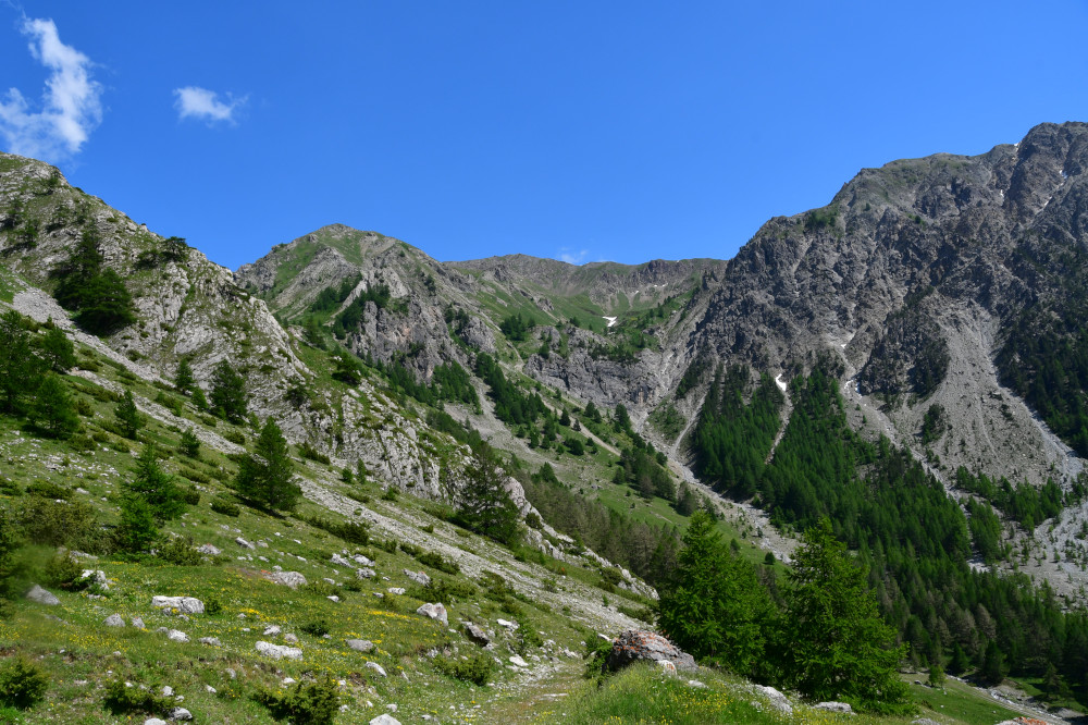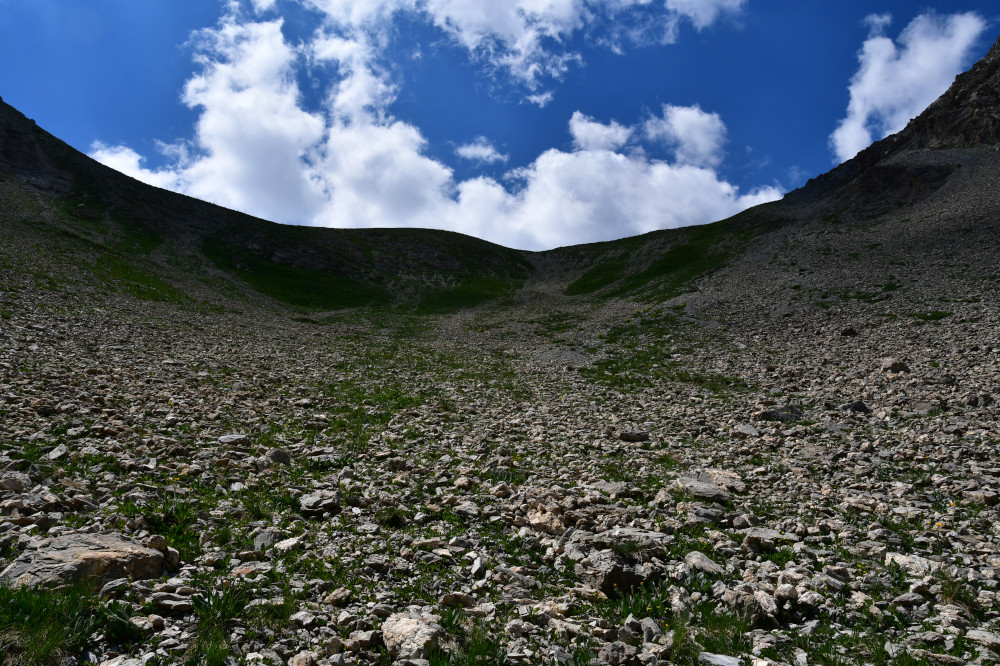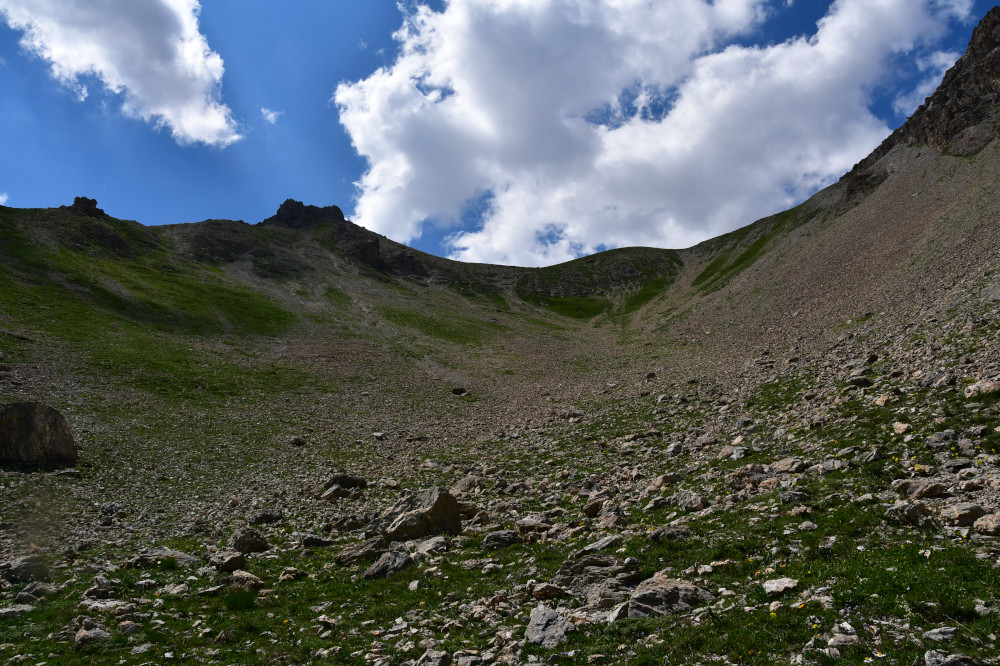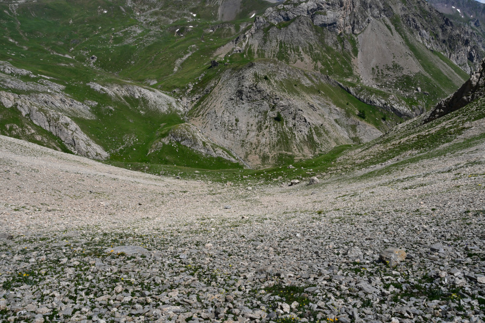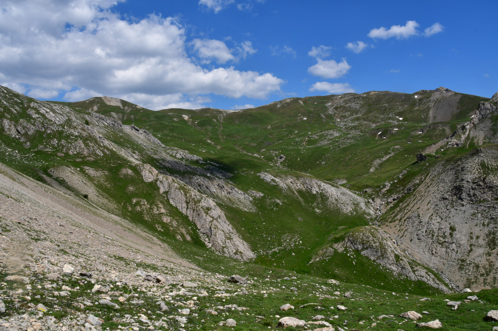 • Le vallon à remonter pour atteindre la crête de la Moulière.