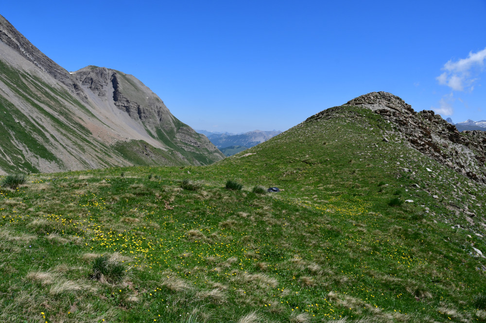 • Vue en arrière sur le vallon du Crachet.