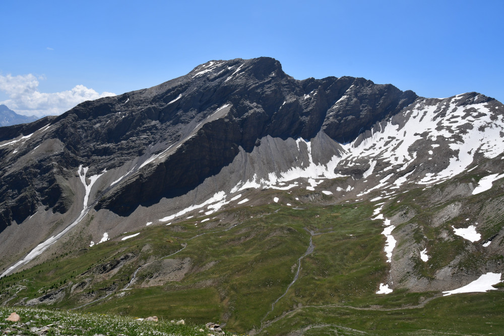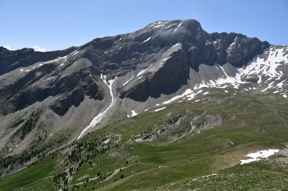 • Au loin, le brec de Chambeyron.