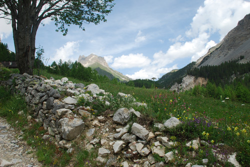 Descendre les lacets et dans le dernier, prendre à gauche vers les Granges de la Vallée étroite.