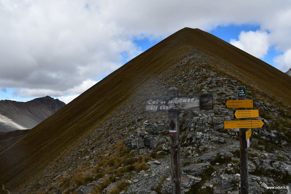 Suivre le sentier très bien marqué, partant vers la gauche en direction du col de la Lauze (pas de panneau). Après environ 1km de terrain à peu près plat, grimper les 300 m restants pour atteindre le col à 2529m.